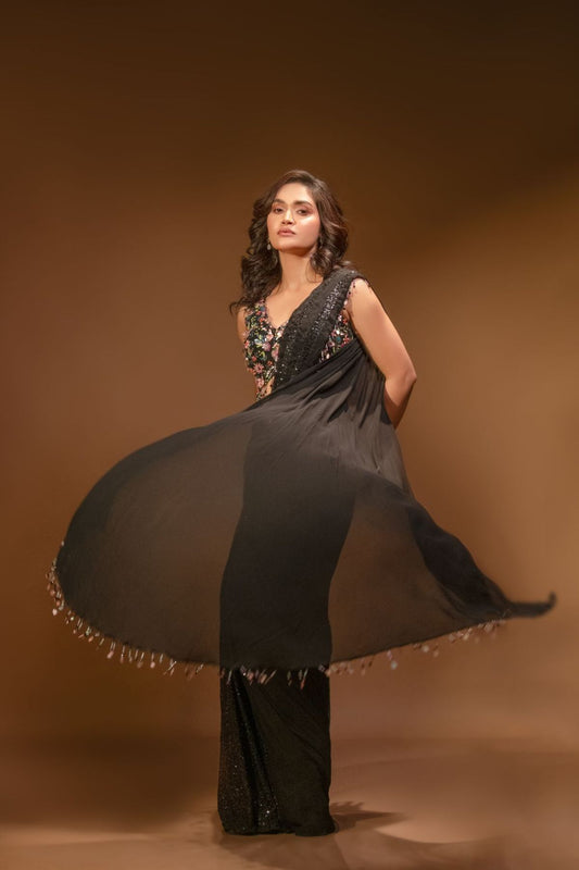 Reeva | Black Ready to Wear Georgette Saree and Blouse