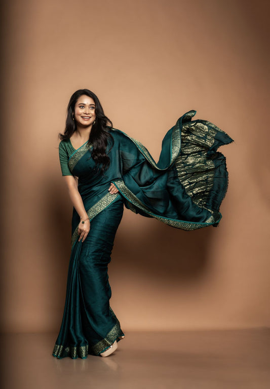 Kalyani | Pure Modal Saree with Zari Work in Teal Green