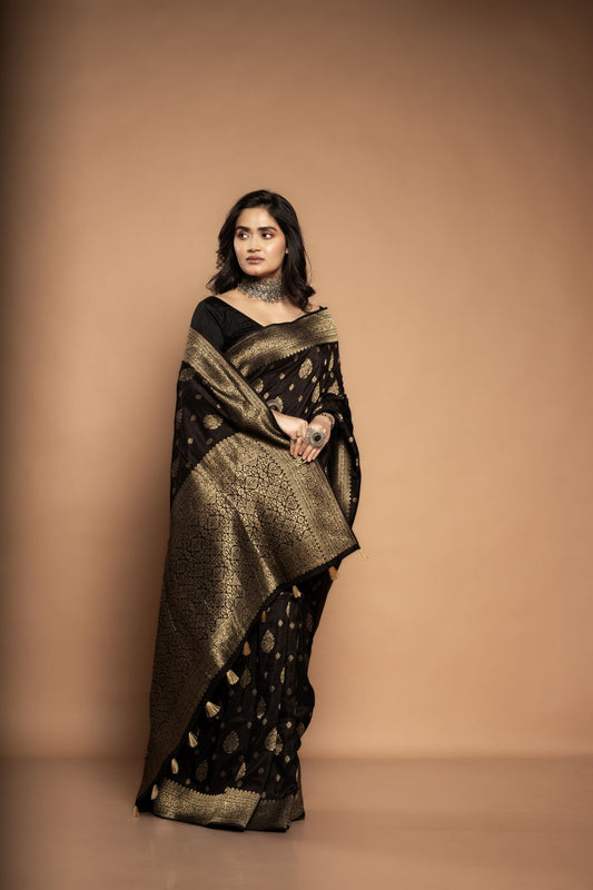 Yamini | Banarasi Silk Saree with Golden Zari in Black